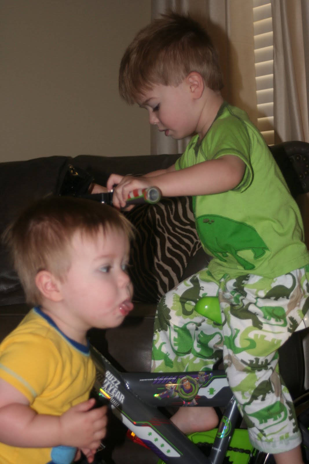 Davis exclaimed as he was coming down the stairs "Is the bike all for me?" Yes, Davis it's all for you. "Oh wow, I love it"! And he hopped on it instantly without any fear. About 30 minutes later, fear set in and he hasn't been on that bike with crying since :(